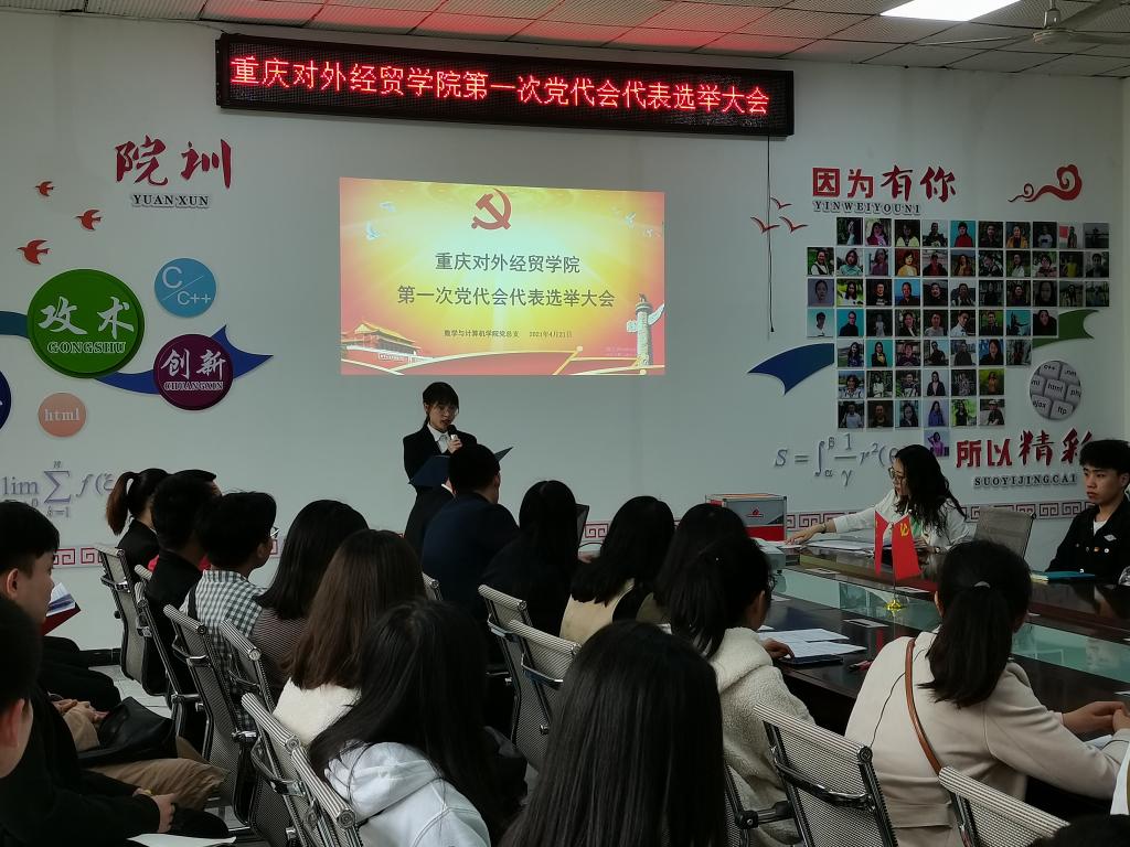 根据校党委的部署,2021年4月21日中午,数学与计算机学院党总支在会议室召开党员大会,选举出席重庆对外经贸学院第一次党代会的代表。