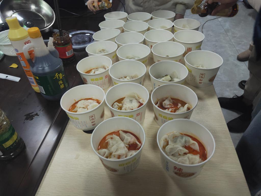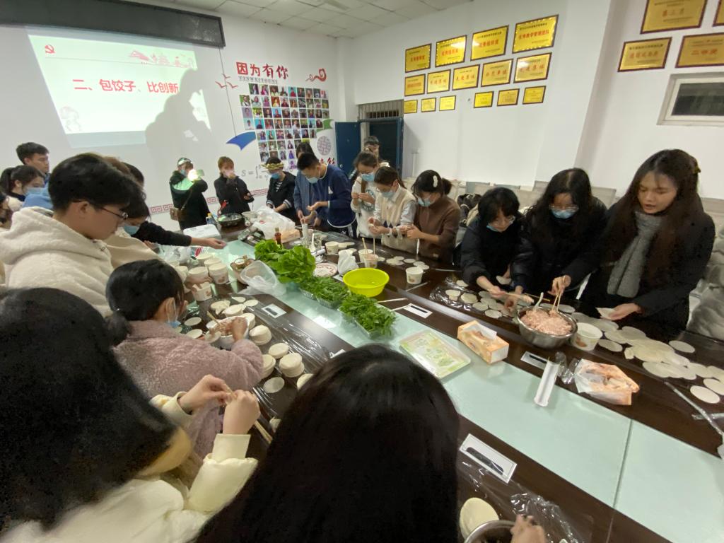 本次活动分为四个部分展开。包饺子,煮饺子,猜灯谜,赠福语。活动前期,工作人员将准备好的饺子皮、肉馅、佐料等其他材料准备好,随后师生一起开始包饺子大赛,最终第三小组夺得头筹;在煮饺子的过程中,开始猜灯谜游戏,大家积极抢答,不胜热闹;煮好饺子以后,为考研学子送上祝福。了解到很多考研学子为努力学习而常常不能吃上一顿热腾腾的饭,今天在这里吃上一顿喷香可口的饺子。赵鹏书记表示,支部举办“研途送暖,圆梦考研”活动目的是想让考研学子在紧张的学习中感受到学院的关怀与集体的温馨,给青春留下美好回忆。