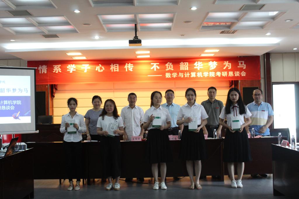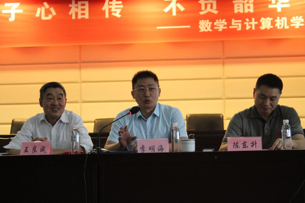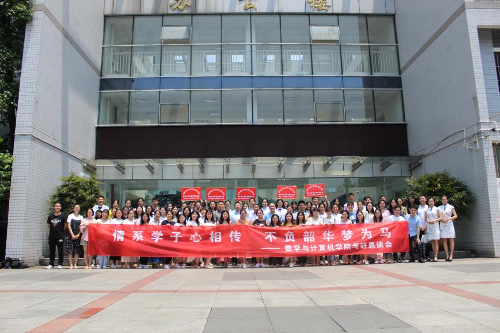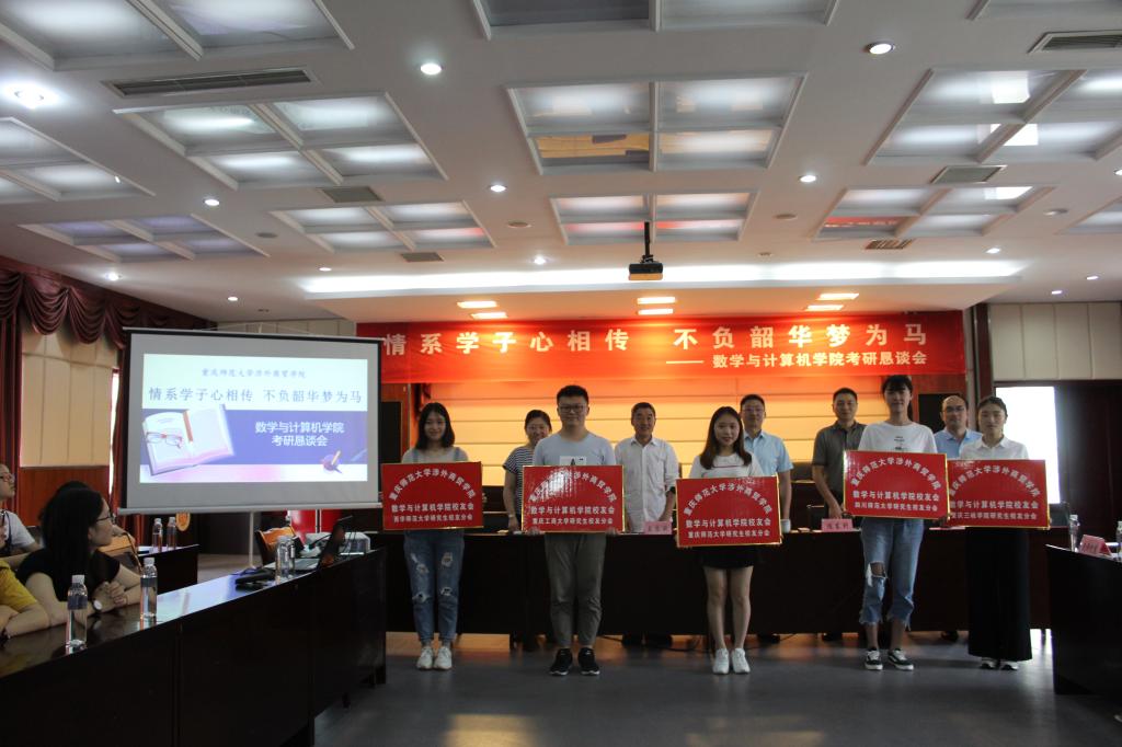 为努力践行和落实学校“三大工程、六大计划、九项行动”,深化教育改革,促进我院考研工作的稳步推进,2019年5月17日上午11:00,我院在行政楼四楼会议室举办了以“情系学子心相传,不负韶华梦为马”为主题的考研学子恳谈会。重庆师范大学涉外商贸学院校长李明海,数学与计算机学院老院长王良成、院长陈东升、党总支书记彭高中、副院长赵洁及74名2019届拟录取研究生参加了此次恳谈会,会议由党总支书记彭高中主持。