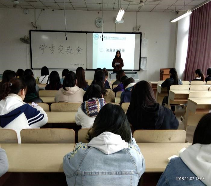 为促进各班学习委员之间的交流,加强我院学风建设,营造良好学习氛围,我院于2018年11月7日13:00在3413教室召开了学委交流会。参加本次会议的有数计学院学习部全体成员、通讯部理事黄蓉以及16级和17级全体学习委员。
