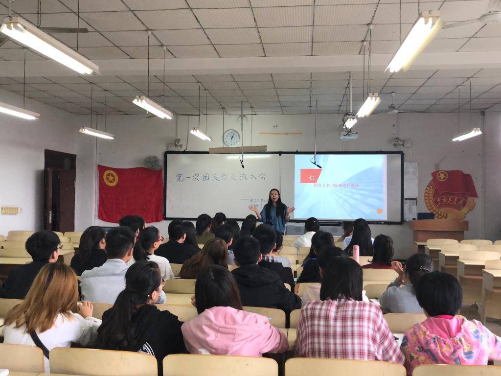 会议在激昂的团歌声中拉开帷幕,首先由组织部副部长张蝶讲解团日活动的注意事项及相关要求,接着由组织部部长罗茂洁讲解团费收缴注意事项,同时汇报此次团费收缴的工作进度。随后由2016级五四红旗团支部书记张敏分享她的工作经验及体会。活动最后陈奇老师总结讲话,对支部建设提出了要求和希望,提升了团支书的思想水平。并且希望同学们不忘初心,砥砺前行。