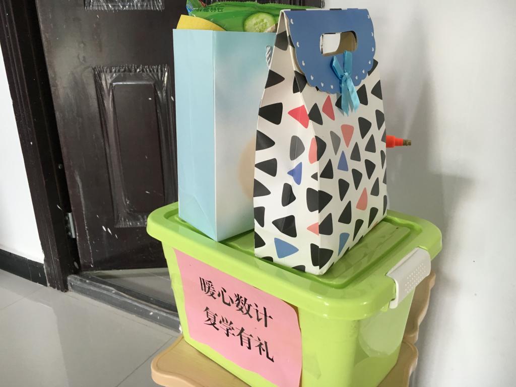 “暖心数计 复学有礼”关爱礼包,包含食物、日用品、温馨手册等各类物品。食品类:牛奶、饼干、新鲜采摘的枇杷、各类零食小吃,在日常三餐以外提供身体所需营养,更换口味;日用品类:驱蚊液、纸巾、垃圾袋、文具用品,满足日常生活学习需要;温馨手册:就业指南,供学生查阅了解。每人还分发文化衫和颜料,进行自由彩绘,待“出关”之日,将空白的T恤变成自己所思所想的创意表达,留做这段特殊时期的真切纪念。