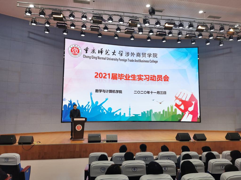 为贯彻《教育部关于加强和规范普通本科高校实习管工作的意见》(教高函〔2019〕12号)文件要求,保障我院毕业生实习工作的连续性,确保我院2021届毕业生实习工作有序开展。我院于2020年11月3日19:00在9101召开了2021届毕业生实习动员会。学院院长陈东升、党总支书记赵鹏、副院长赵洁、团总支书记冉启周、办公室主任冷震北及2021届毕业生参加本次会议。