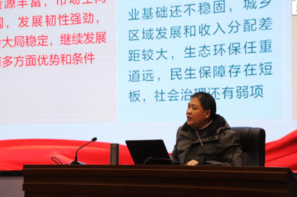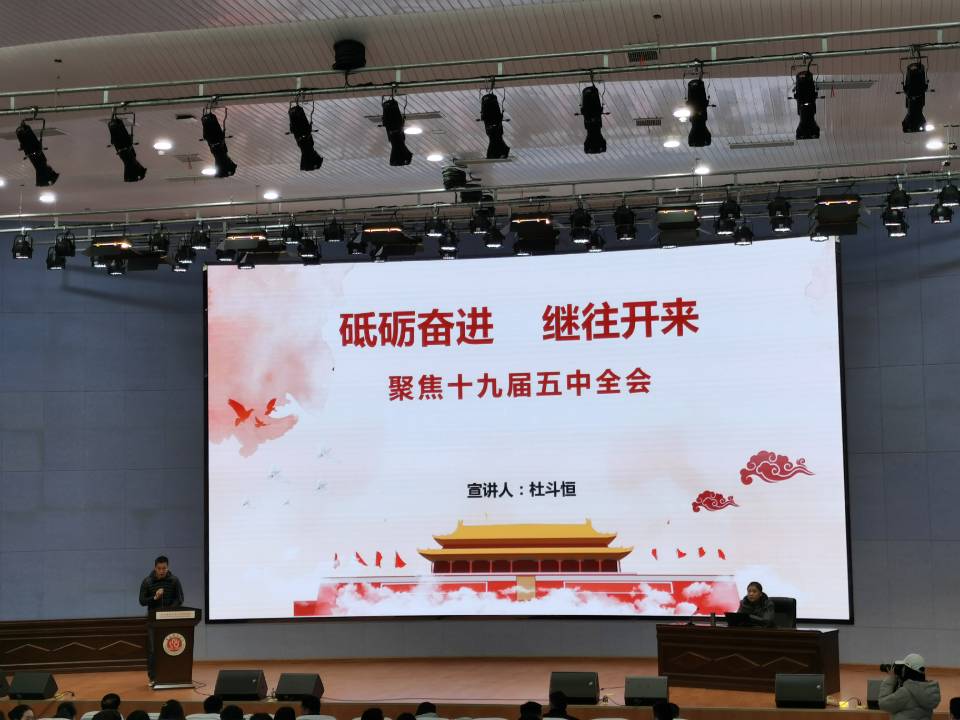 12月10日下午在9101学术报告厅,副校长杜斗恒为数学与计算机学院、音乐舞蹈学院、管理学院和体育系全体教师以及学生代表作十九届五中全会精神宣讲报告。体育系党总支书记谢冬主持会议。