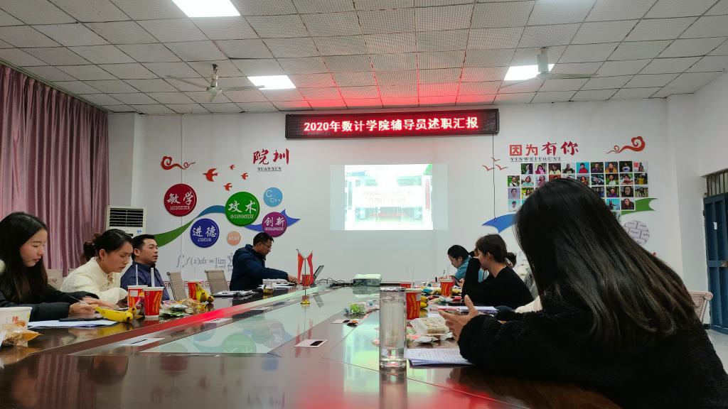 为进一步加强辅导员队伍建设,全面、客观、公平地评价辅导员的工作业绩和德才表现,有效激发辅导员工作积极性,鼓励辅导员进一步提高政治素质、业务素质,认真履行岗位职责,全面提高育人水平。2020年12月17日下午数学与计算机学院2020年辅导员述职汇报在3103举行,会议由学院党总支书记赵鹏主持,团总支书记冉启周和全体辅导员参加。