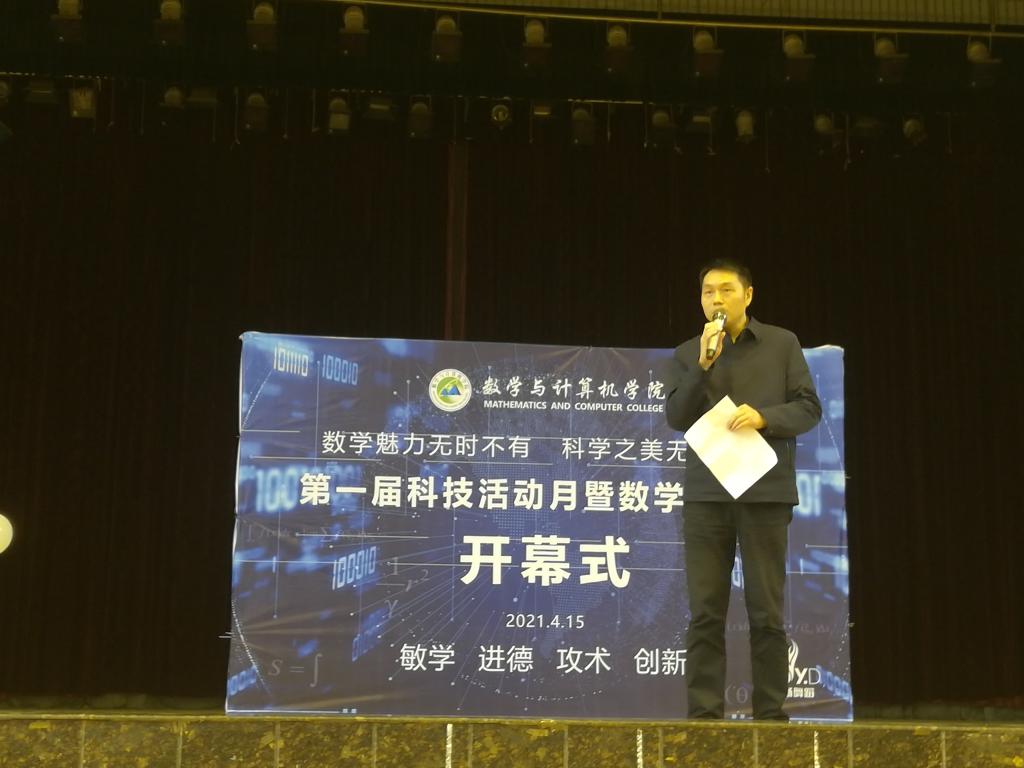 首先我院院长陈东升发言中谈到数学的魅力之美,呼吁同学们学好数学,开拓知识面,丰富校园生活。副院长赵洁从科技与数学的角度出发,再次强调了数学的广泛性,鼓励同学们将自身专业知识融入生活,增强大学生专业技能,营造出良好的校园学术交流氛围。发言后,同学们献上了精彩的节目表演。最后,党总支书记赵鹏宣布第一届科技活动月暨数学文化节正式开幕。