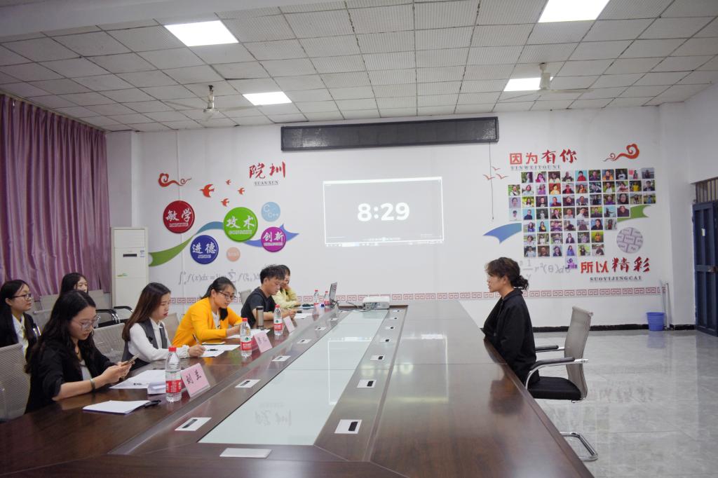 决赛伊始,刘兰老师向参赛选手们介绍了本次决赛的竞聘规则和竞聘流程,并对选手们提出的疑问逐一解答。之后,参赛选手们根据抽签顺序逐一进行单独的限时面试。在面试的过程中,选手们对既定的问题进行阐述,努力展示自己积极向上的精神风貌,流畅的语言表达,以及敏捷的思维。结束后,刘兰老师与参赛选手们进行了交流反馈,分析了整场决赛的各个考察点,肯定了每一位选手的优点,同时也激励每一位选手能得到进一步提高。