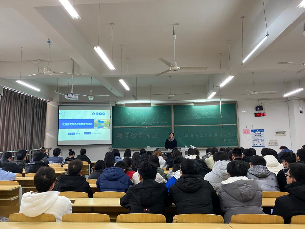 为了使同学们更加了解软件方面的知识,更加全面的知道现代软件开发所要具备的能力,数学与计算机学院于2021年12月9日下午在T3402教室开展了“软件开发方法与新技术方法论”的教学沙龙讲座。本次讲座主讲人是蒋传健老师。