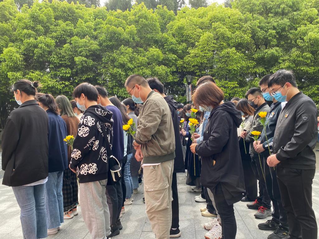 在庄严肃穆的烈士陵园中,全体人员奏唱中华人民共和国国歌。随后,全体肃立,低头默哀一分钟,深切表达对英雄的崇敬和缅怀之情。