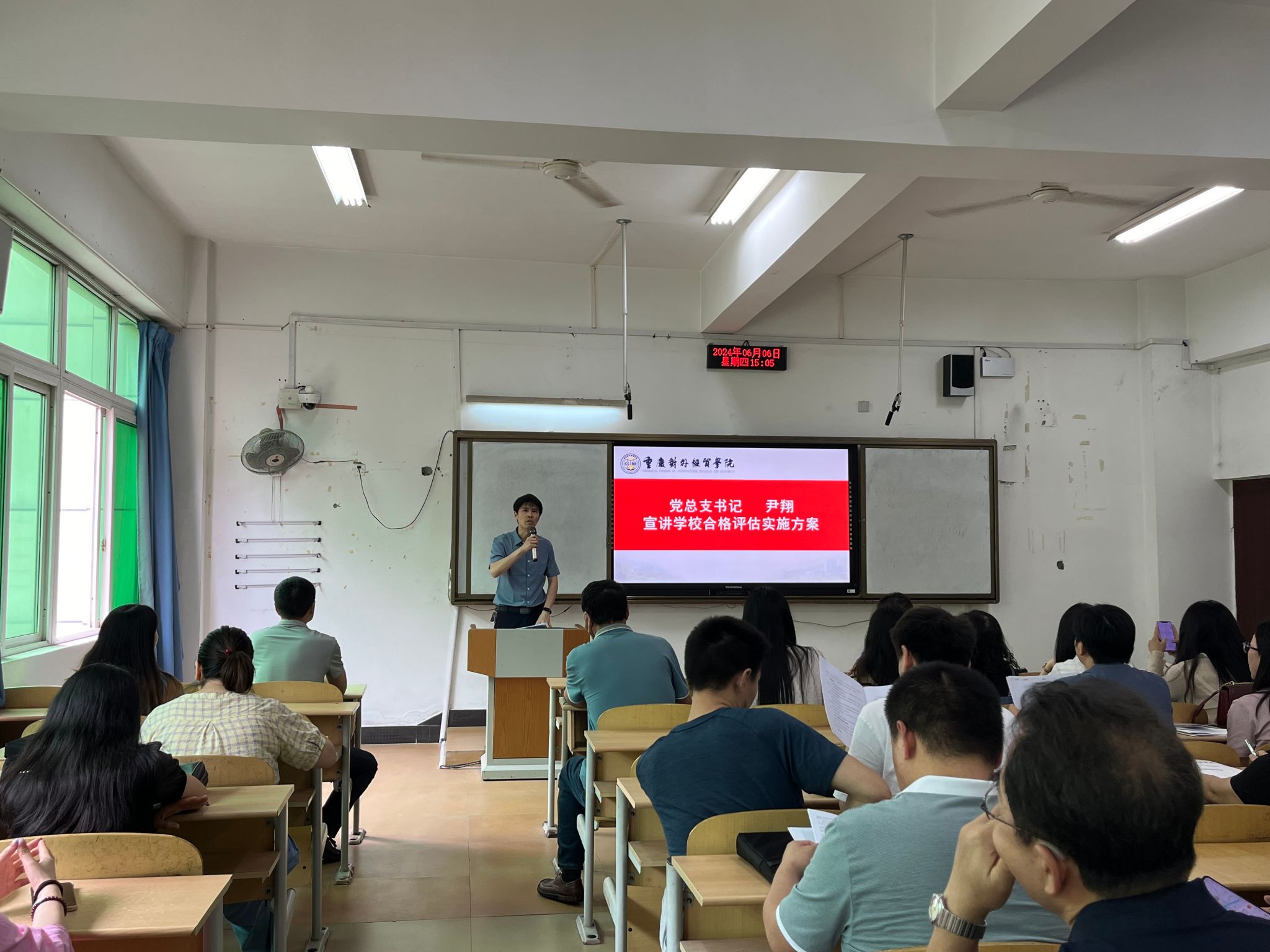 党总支书记尹翔作迎评动员精神传达。他强调全院师生应该敢于挑战,抢抓机遇,不断提升能力、改进作风,党员领导干部要带头,全体党员要示范,全体师生参与,以只争朝夕的紧迫感和舍我其谁的责任感,主动积极参与到合格评估各项工作中。同时,学院还将成立专门的评建工作小组,负责具体工作的推进和协调,日常工作要结合合格评估指标体系,扎实开展,切实加强内涵建设,强调成效和时效。