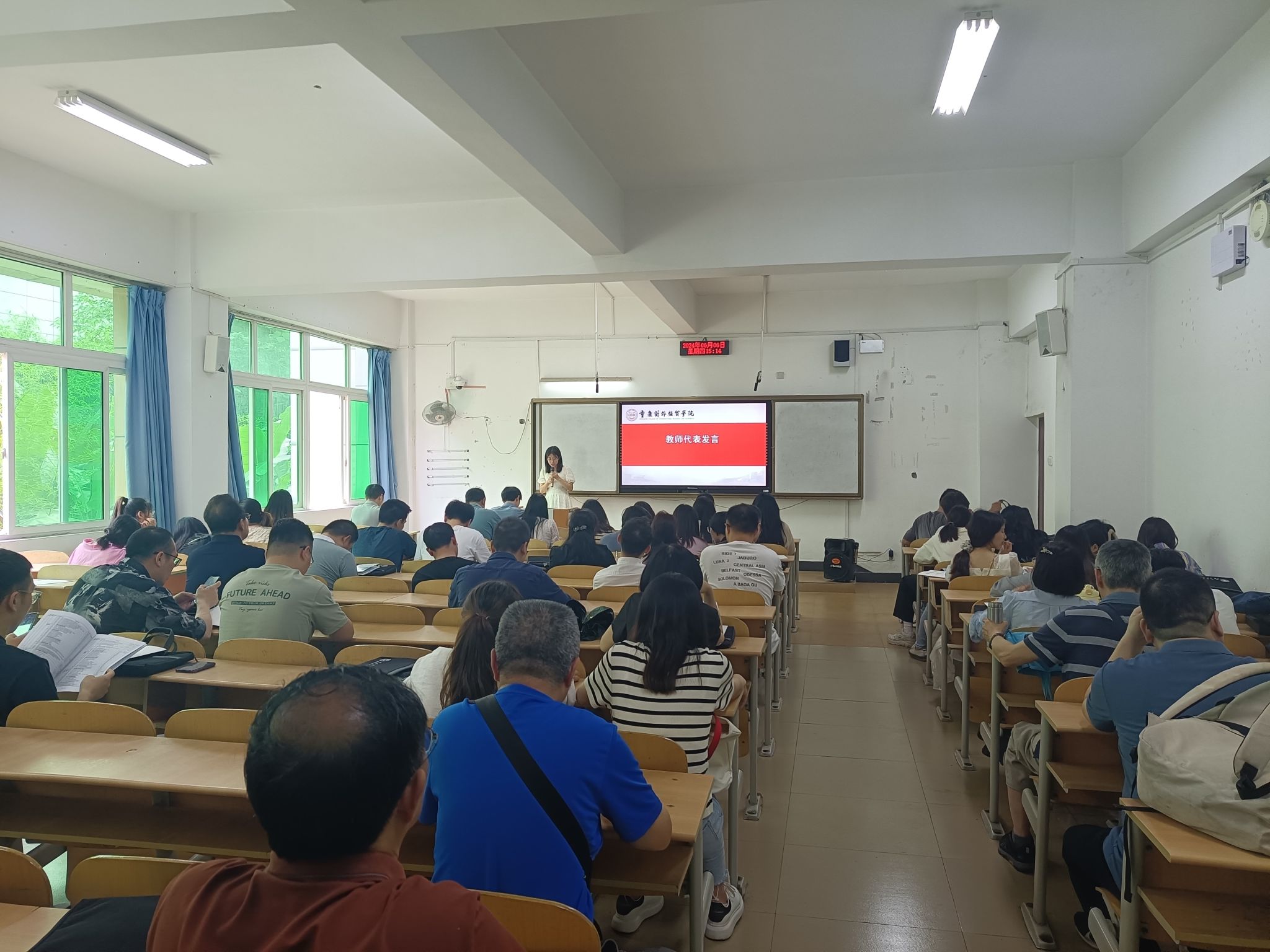 教师代表于春艳老师围绕基本教学工作、教学方法改革、课程建设创新三个方面做出表态发言,她表示作为一线教师,将始终牢记自己的责任和担当,将积极响应学院号召,不断提升自身教学水平和课程质量,全身心投入到本科教学工作合格评估的各项任务中。
