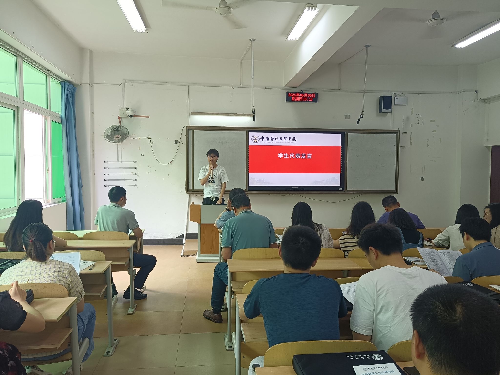 学生代表2021级数学与应用数学(师范)专业5班曾宇州发言,表示将以饱满的学习态度、高度的责任心、综合素质的全面提升等方面投身于评建工作,同时也将不负众望,为学校的荣誉和未来而努力拼搏,为学校顺利通过评估贡献自己的力量。